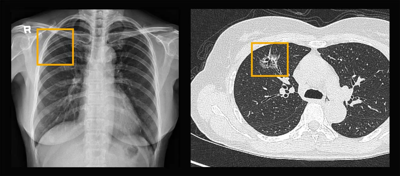 일반 X-레이 촬영과 저선량 폐CT 사진 비교